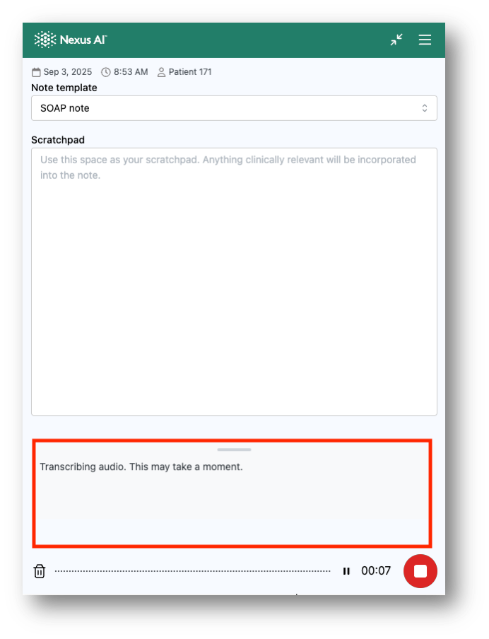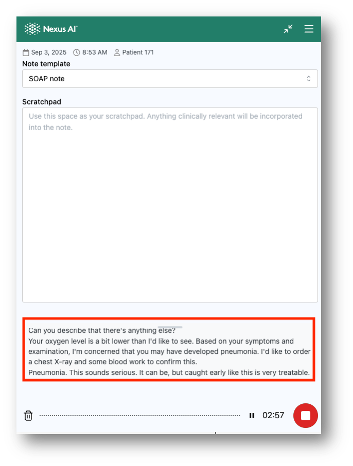 This transcript feature enhances documentation accuracy and provides additional confidence in your clinical record-keeping process.
